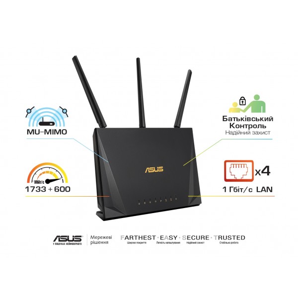 | Функции безопасности | Безопасность Wi- Fi: 64-bit WEP, 128-bit WEP, WPA2-PSK, WPA-PSK, WPA-Enterprise, WPA2-Enterprise, поддержка WPS, фильтр MAC-адресов MU-MIMO Внешняя защита на основе брандмауэра: Обнаружение вторжений SPI, защита от DOS-атак, фильтры URL-адресов/ключевых слов/сетевых служб; брандмауэр IPv6 Дополнительные возможности защиты: Гостевой доступ с ограничением по времени, родительский контроль |