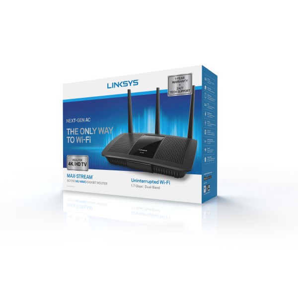 Гигабитный двухдиапазонный WiFi 5 маршрутизатор LINKSYS EA7300 MAX-STREAM с технологиями AC1750 MU-MIMO будет надежным и бесперебойным в работе для всех ваших устройств одновременно и с одинаково высокой скоростью.