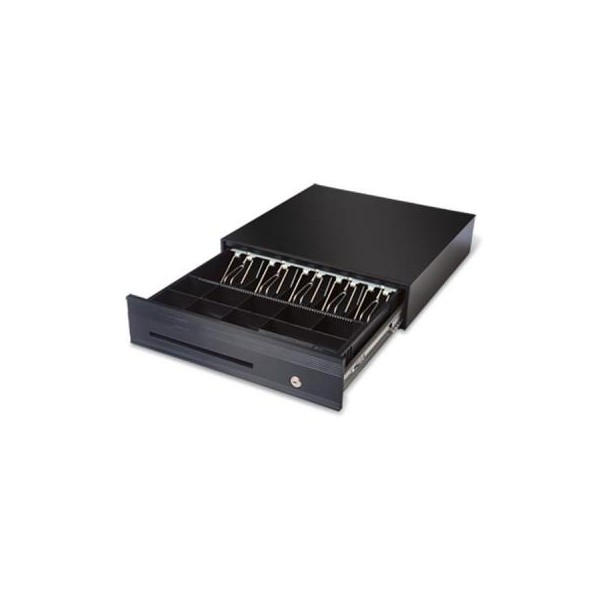 Профессиональный электронный денежный ящик Maken SK-425 (15548) усиленной конструкции. Изготовлен из толстой и прочной холоднокатанной стали. Выполнен в черном цвете, имеет стильную переднюю панель. Оснащен стандартным разъемом Epson standard RJ11 и съемным ящиком из небьющегося пластика. Имеет 5 регулируемых отделений для банкнот и 8 для монет. 3-х позиционный замок надежно защищает ящик от взлома.