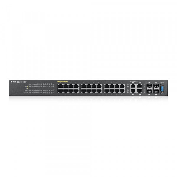 GS2210-24HP — гибкий PoE-коммутатор доступа второго уровня для конвергентных сетей с передачей данных, видео и голоса. Гибкий контроль трафика в конвергированных сетях. Изделие использует мощный функционал Layer 2 для организации передачи по сети трафика VoIP, видеоконференций, IPTV и IP-камер наблюдения, предоставляя отелям, компаниям и образовательным учреждениям гибкое и эффективное управление трафиком современных конвергентных приложений.
