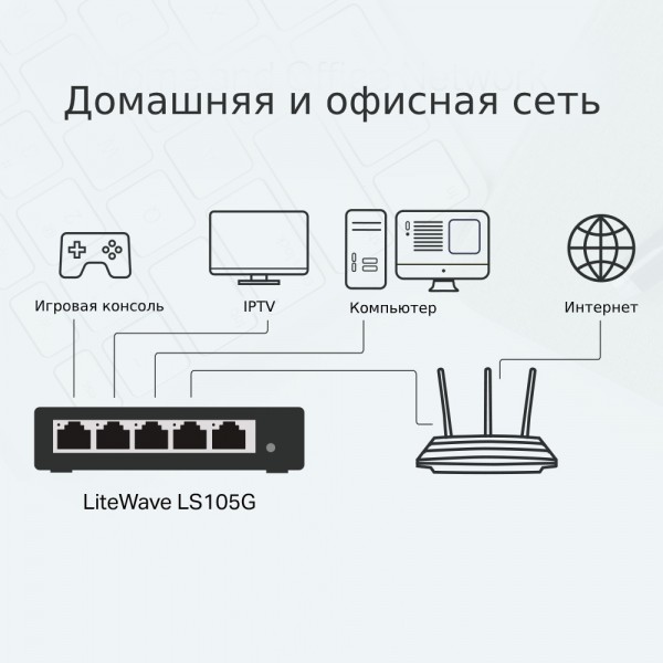 5-портовый 10/100/1000 Мбит/с настольный коммутатор LS105G