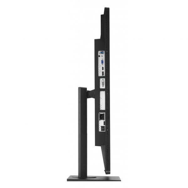 Эргономичная подставка данного монитора позволяет настраивать угол наклона и высоту экрана, а также разворачивать его так, как удобно пользователю. Специальная крепежная планка дает возможность легко спрятать все разъемы из виду.