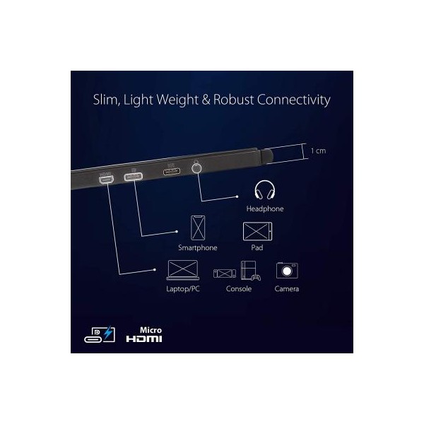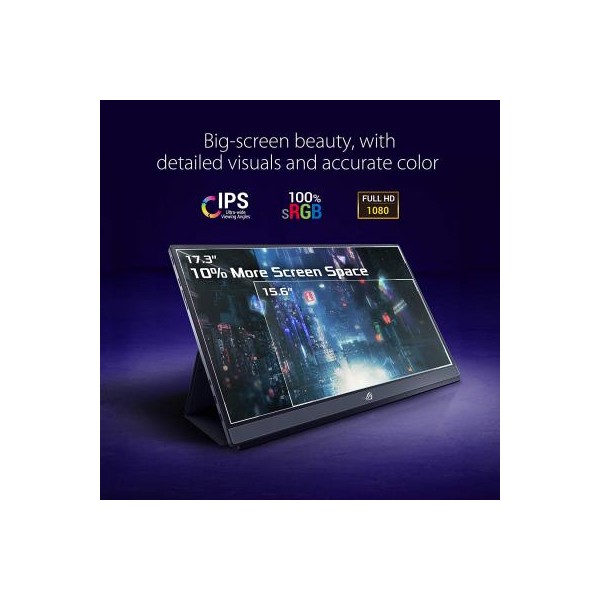 ROG Strix XG17AHP с тонким профилем в 1 см и весом всего 1060 г великолепно портативен, его легко установить и использовать где угодно.