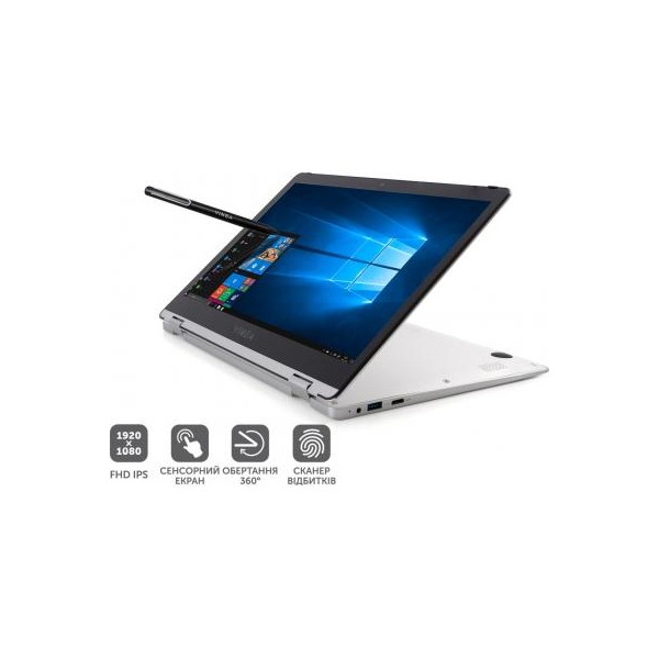 Ноутбук Vinga Twizzle Pen J133 (J133-C33464PSWP) — компактная модель-трансформер, изготовленная из прочного алюминия. Корпус устройства окрашен в серый цвет. При диагонали экрана в 13.3" и габаритах в 316.5x213x17.5 мм лэптоп весит не так уж и много — 1440 грамм. Когда необходимо, его можно раскрыть на 360°. Сенсорный дисплей оборудован качественной матрицей IPS с разрешением FullHD (1920х1080).