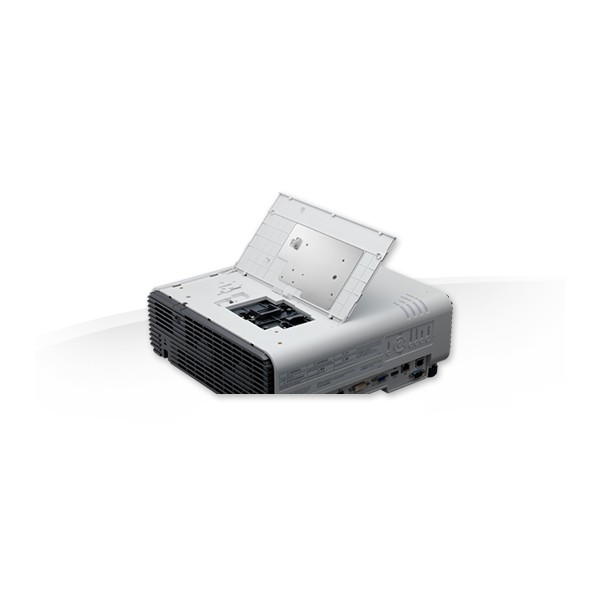 Проектор компактного размера можно устанавливать в аудиториях, конференц-залах и других помещениях небольшого размера. Он станет отличным решением для музеев и творческих выставок, ведь корпус с плоской верхней частью дает возможность выбрать удобное расположение ножек, что идеально подходит для систем с несколькими проекторами. Чтобы получить нужную проекцию, можно установить проекторы один над другим или вернуть вертикальную проекцию на любой угол.