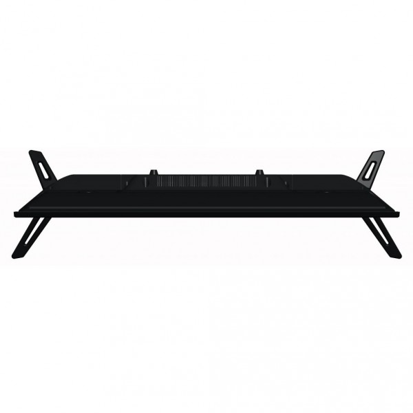 Телевизор имеет компактные габариты – 730 х 77 х 429 мм без учёта подставки. Подойдёт для монтажа на кухне или в спальне. Поддерживаются технологии HDMI и USB, есть возможность подключить накопитель, тюнер или проигрыватель любого типа. Вывод изображения возможен с помощью планшета или ноутбука с помощью кабеля. Телевизор не имеет поддержки технологии Blu-ray, но поддерживает ряд наиболее распространённых форматов – AVI, MKV, MOV. В устройство встроен тюнер DVB-T2, который позволяет смотреть цифровое телевидение высокого качества.